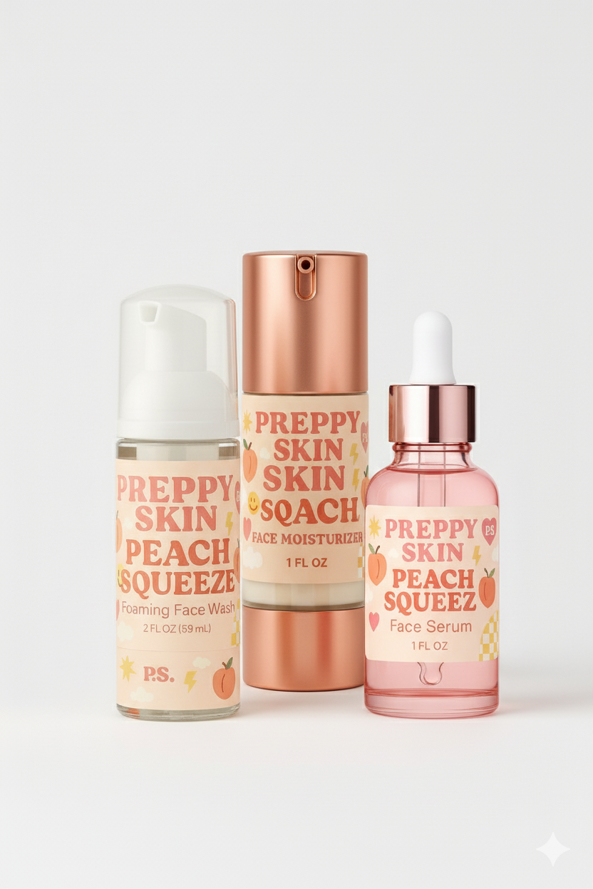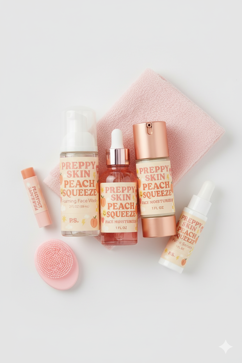 Introducing the "Preppy Pouch", your all-in-one skincare adventure! Inside you will find your refreshing Face Foam Wash, a nourishing Face Serum, a soothing Face Moisturizer, and a luscious Lip Balm. Plus, enjoy a soft face wash cloth, the gentle Preppy Bar Soap, a Hydrating Face Mask, relaxing Eye Mask, and a fun Heart-Shaped Water Activated Sponge. To keep things exciting, we’ve added a few surprise gifts just for you. Perfect for playful skincare lovers ready to glow and smile every day!